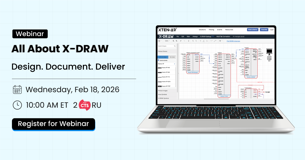 Discover how to design, draw, and diagram AV systems 10× faster. In this webinar, XTEN-AV will showcase X-DRAW, the industry’s most comprehensive AV design and diagramming platform. Learn how X-DRAW automates AV designs, streamlines drawing creation, and makes editing effortless—saving time at every stage of your workflow.